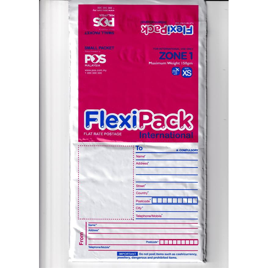 Out of stock Description Reviews 0 Convenient prepaid packaging for international door-to-door deliveries. Promo Flexipack International Zone 1 XS RM3000 International Prepaid Envelope with maximum weight of 150g for Zone 1 countries. Pos Malaysia is Malaysias largest network courier with over 200 years of service.